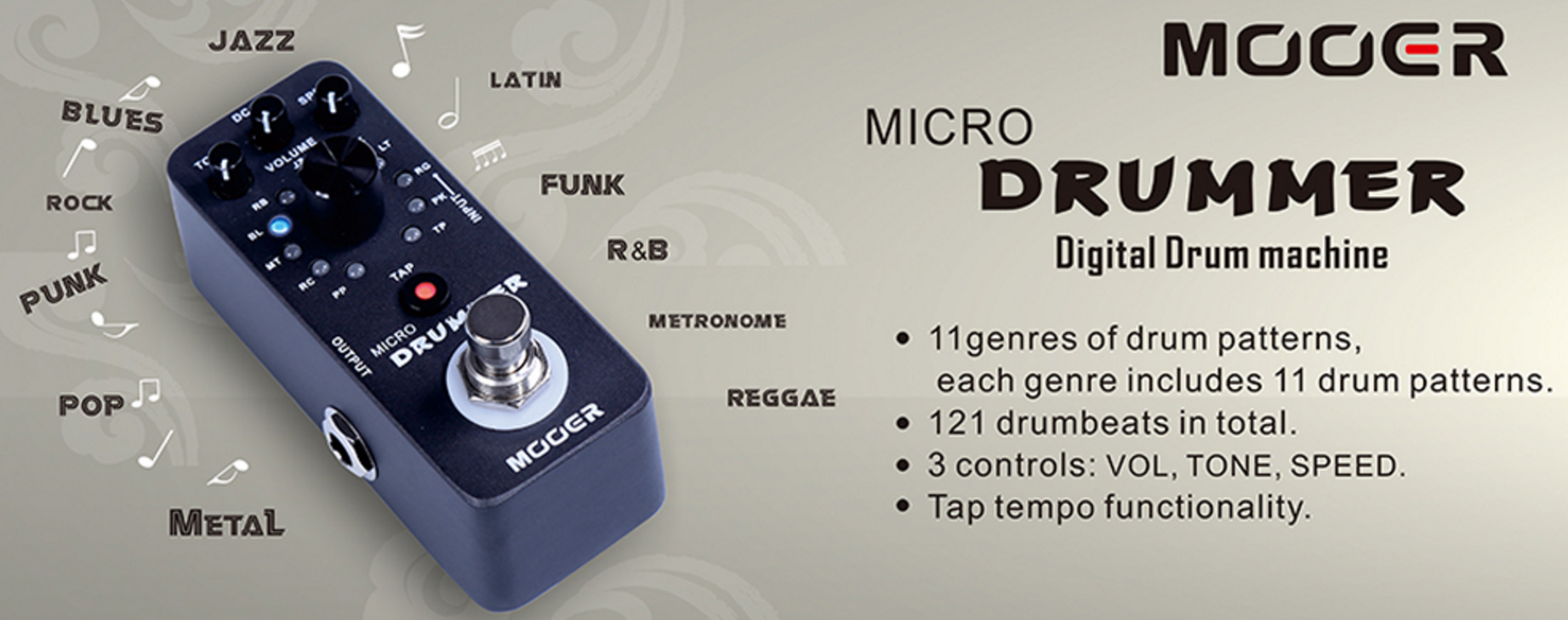 - MOOER Micro Drummer Digital Drum Machine