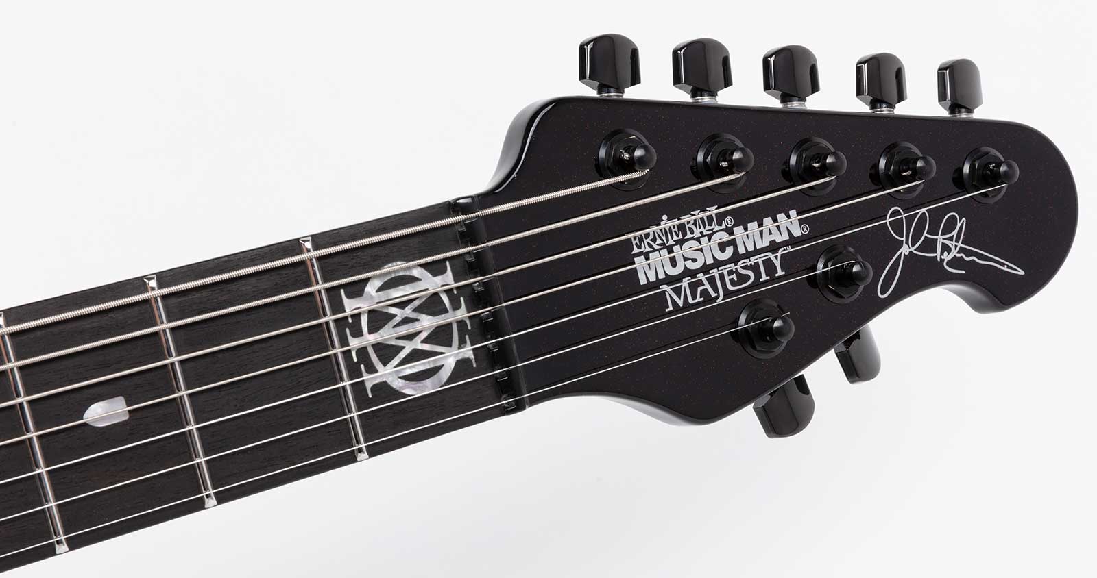 La MUSIC MAN John Petrucci Majesty 7 (618-RDS-50-00-MB-BM) est à tout point de vue une impressionnante guitare électrique solid body (sept cordes, diapason standard).