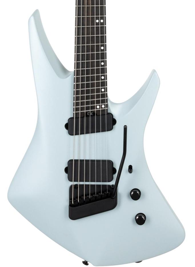 - Guitare électrique solid body 7x cordes, multi-diapasons, frettes éventail