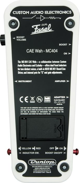 La Wah / Filtre Jim Dunlop MC-404 CAE Wah développée conjointement par Bob Bradshaw de Custom Audio Electronics et l' équipe de techniciens Jim Dunlop spécialisés sur les Crybaby, est un effet haut de gamme en terme de conception et de composants.
