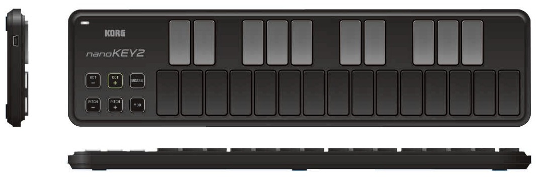 Clavier maître de 25 touches KORG Nano Key2 black, résistant et sensible à la vélocité. Modulation, sustain, pitch et modification d'octaves. Toutes les fonctions d'un clavier maître sur 1,6cm d'épaisseur!.