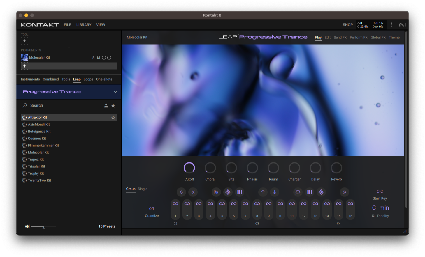 Les nouveaux outils d'accords et de phrases offrent des fonctionnalités intelligentes pour susciter rapidement des idées et peuvent être associés à vos instruments Kontakt préférés pour débloquer de nouvelles possibilités créatives.