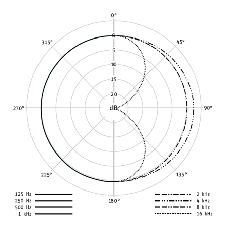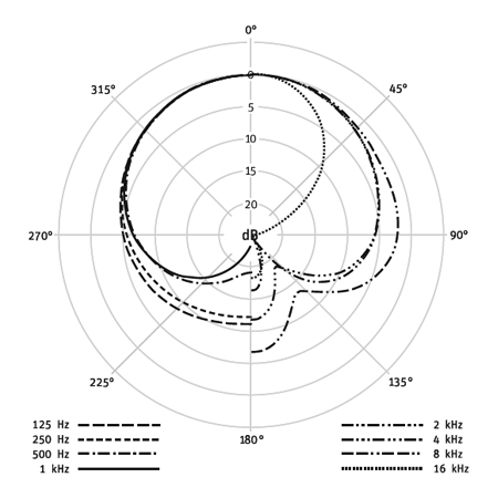 - Niveau SPL maximal, pour THD = 0,5% : 117 dB (cardioid)