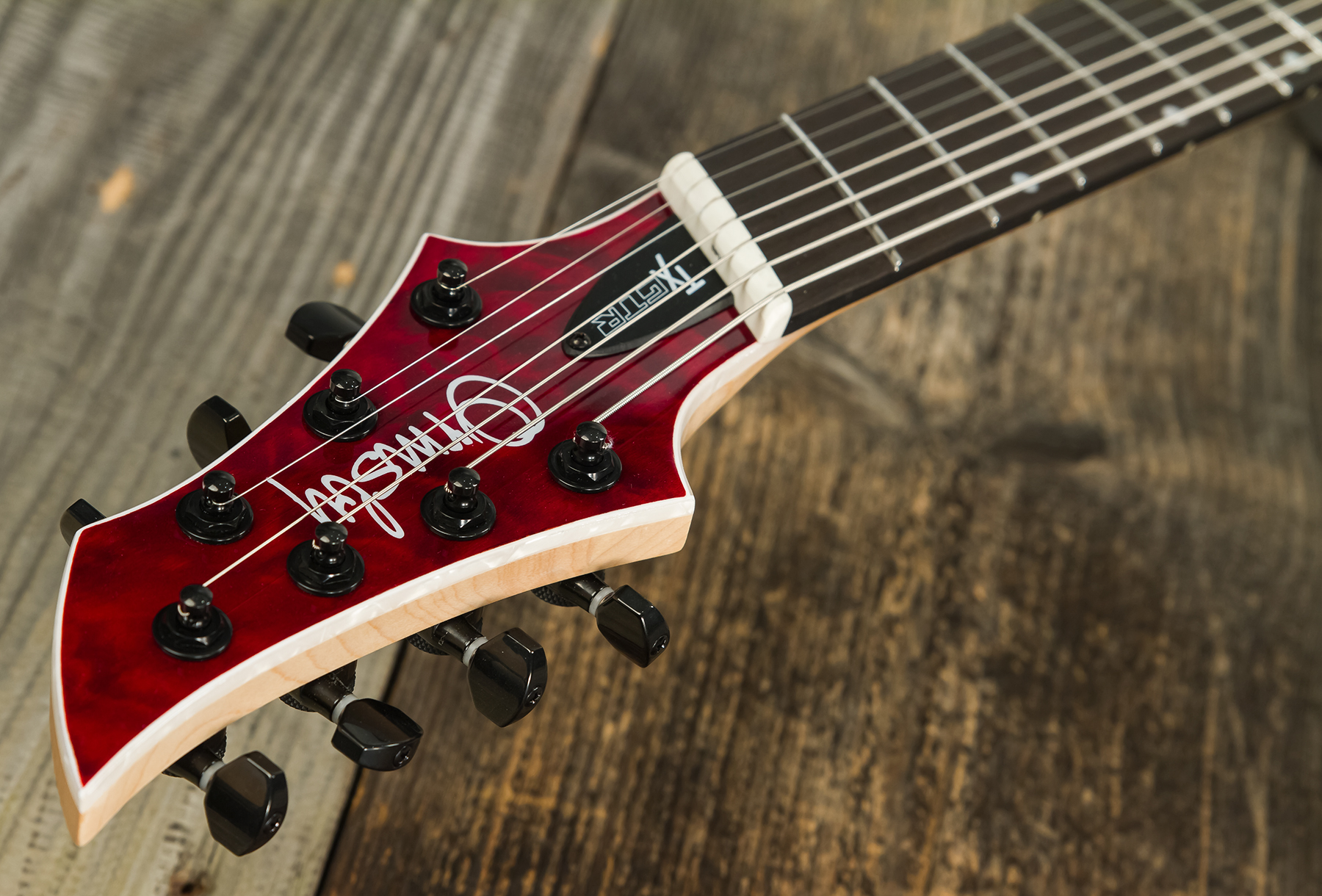 Mixant à la perfection une lutherie classique très soignée (caisse Acajou, table Erable figuré, manche vissé Erable, touche Ebène) à des caractéristiques de pointe et un équipement de haute qualité (micros Ormsby custom, fonction split-coil, accastillage Hipshot custom), la TX GTR vient concurrencer les Mayones et autres Caparison.
