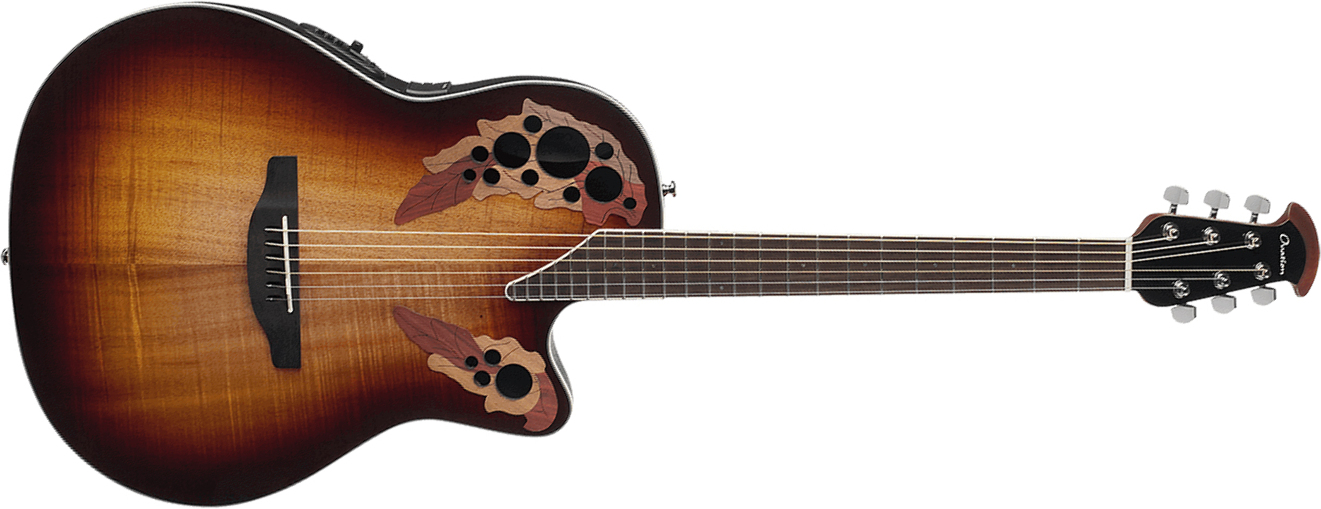 OVATION Celebrity Elite Exotic CE48P-KOAB, guitare folk électro, table Koa laminé, caisse Lyrachord, gabarit Super Shallow, pré-amplification Ovation OP-4CT (accordeur).