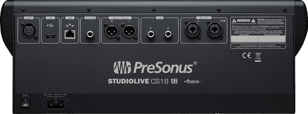 Câblé en réseau avec les consoles de la série RM, via la technologie AVB Ethernet et PreSonus UCNET, le CS18AI vous permet un contrôle hardware total de la situation. Cette solution vous permet par exemple de laisser votre rack RM d'entrée & sorties sur scène, tandis que vous gérez le mix à des centaines de mètres de la scène, grâce à un câble dédié.