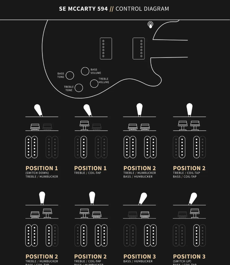 La PRS SE McCarty 594 (Black Gold Burst) est un instrument polyvalent d'inspiration vintage qui met à votre disposition une vaste sélection de sonorités en mode simple ou double bobinage, dans tous les cas chaleureuses et expressives.