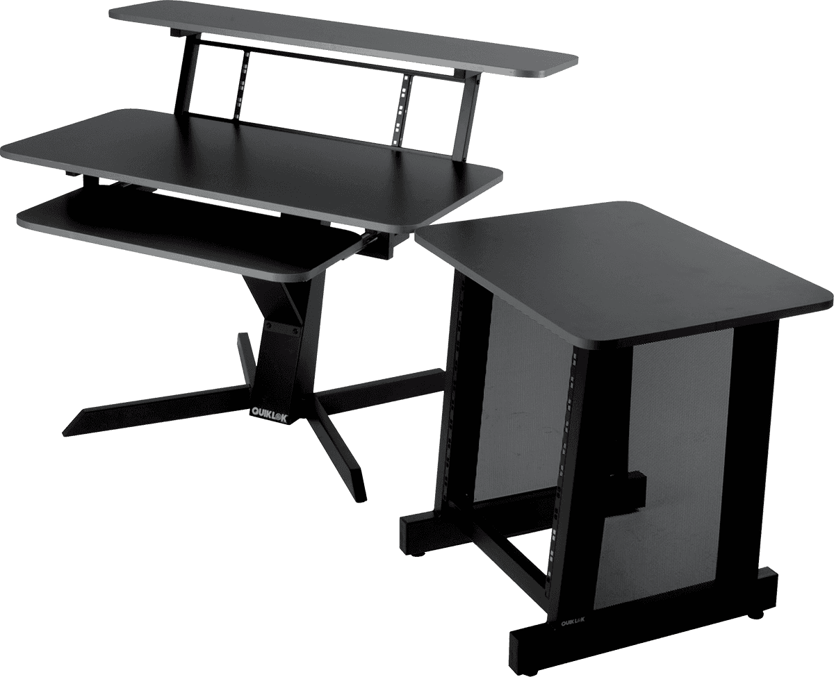 Quik Lok dispose d’une gamme de produit pour mobilier de studio. La gamme "Z" en plus de détenir un design moderne et élégant, dispose d’une conception ergonomique pour un maximum de confort et d'efficacité. Sa structure robuste en acier est adaptée aux charges lourdes donc vous n’aurez aucun problème pour déposer votre clavier maître/synthé, plus vos enceintes, plus un écran et des périphériques audio dessus !