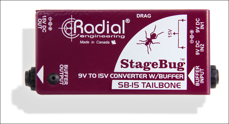 Le buffer haute qualité RADIAL Stagebug SB-15 Tailbone embarque un convertisseur 9V vers 15V qui positionné en début de chaîne d'effet, permet d'alimenter plusieurs pédales en minimisant le bruit induit qui détériore généralement les circuits à haute impédance.