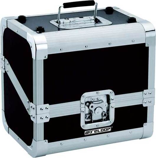 Valise de transport pour 80 vinyles. Coupe oblique pour former deux bacs une fois le flight ouvert, facilitant la recherche des disques.