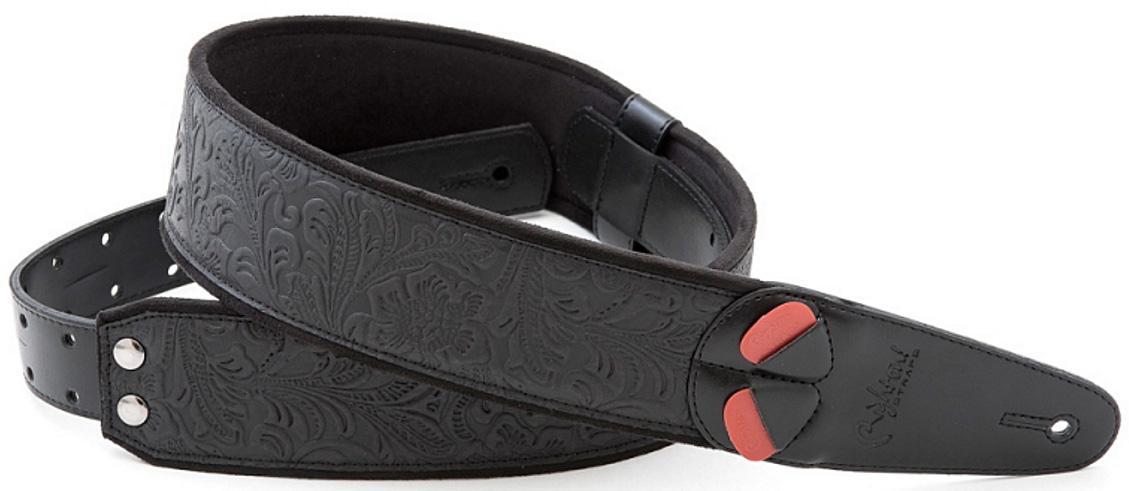 La sangle guitare et basse en matériaux synthétiques hi-tech RIGHTON STRAPS Mojo Sandokan Black inspire la qualité au premier coup d'oeil.