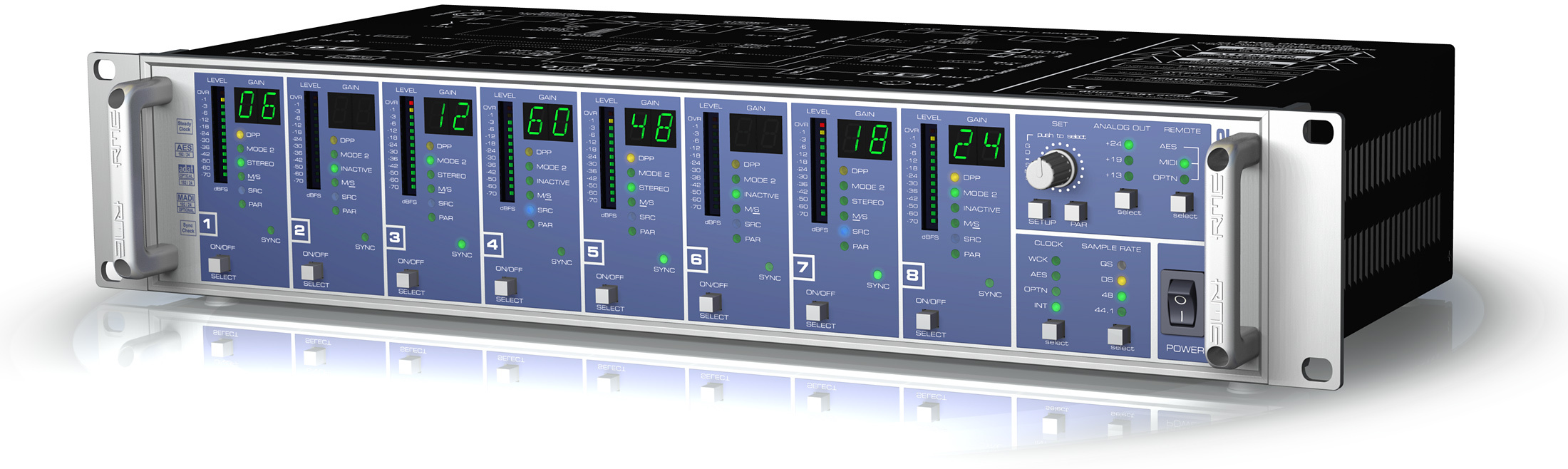 La RME DMC842 est une interface USB3 capable de gérer jusqu'à 394 canaux, grâce à la carte optionnelle triple MADI 192kHz.