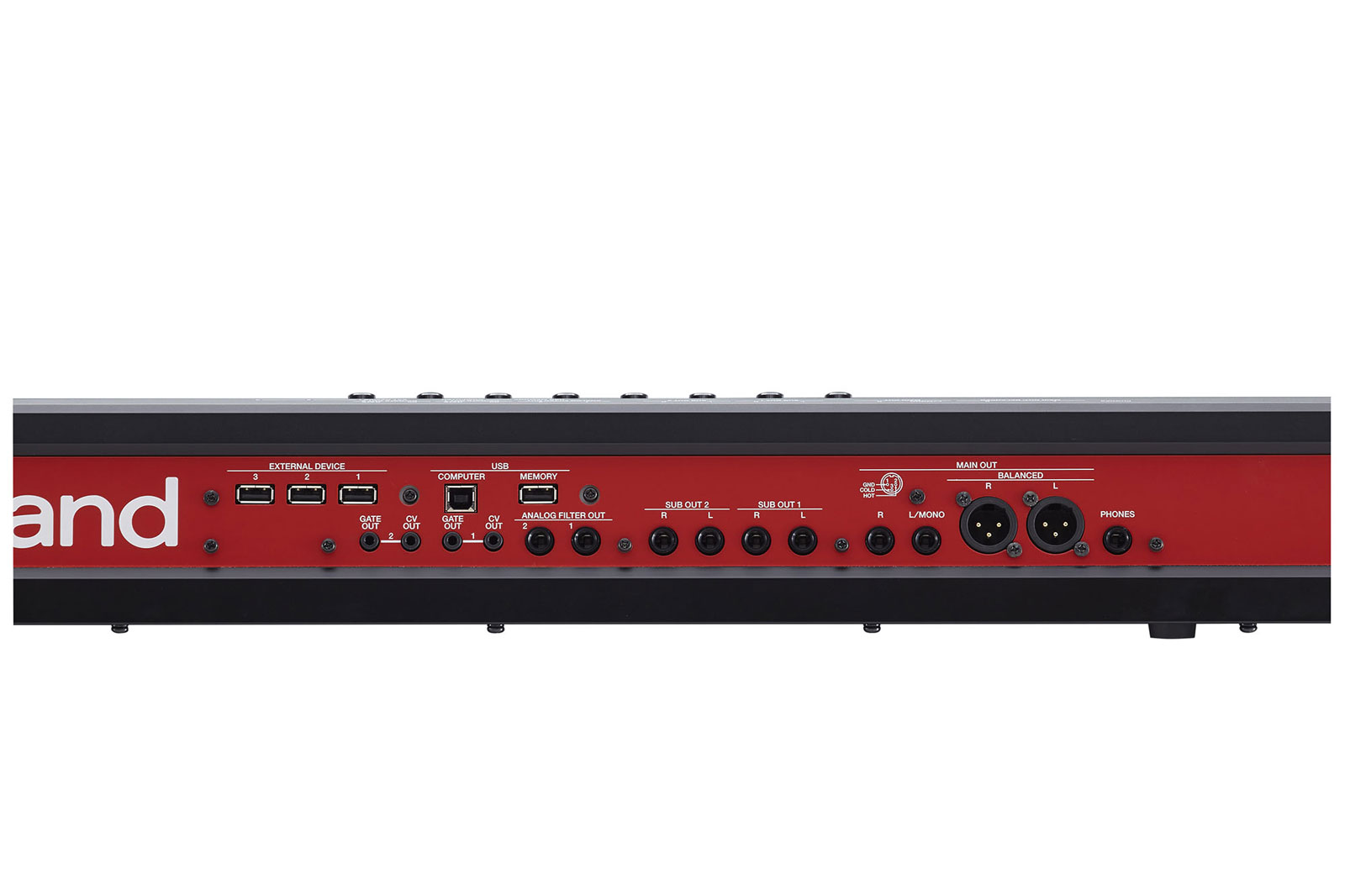 - MIDI connectors (IN, OUT1, OUT2/THRU)