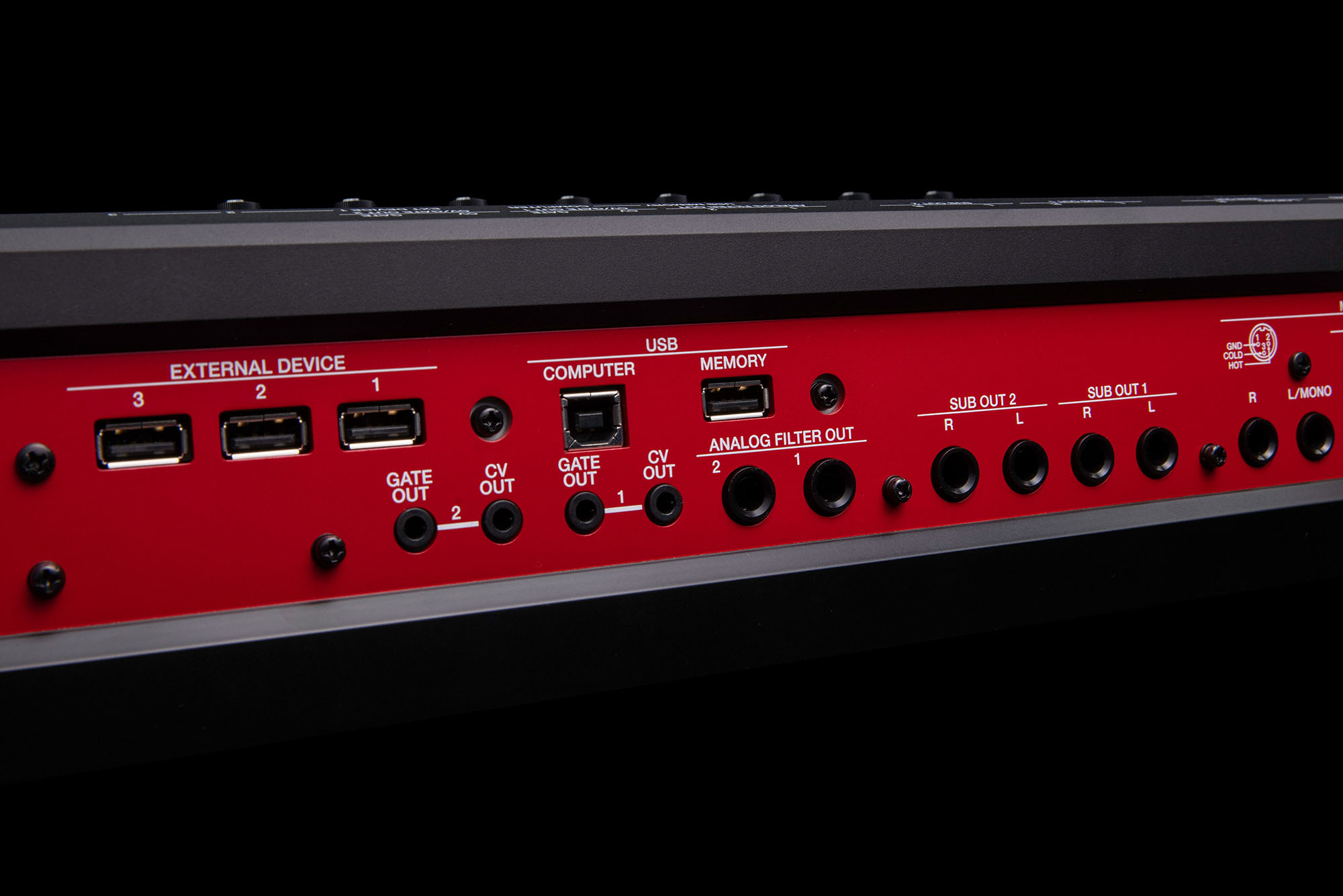 - Entrées/sorties audio multicanal, entrée/sortie MIDI, deux sorties CV/Gate et USB