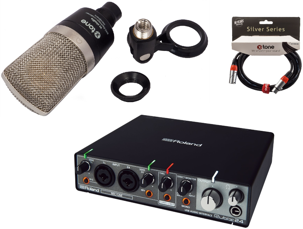 Enregistrez vos premiers sons sur Mac, PC et iPad avec ce pack Home Studio incluant la carte son Roland Rubix 24 + un micro X-Tone XS Studio + 1 câble Xlr 3 mètres.