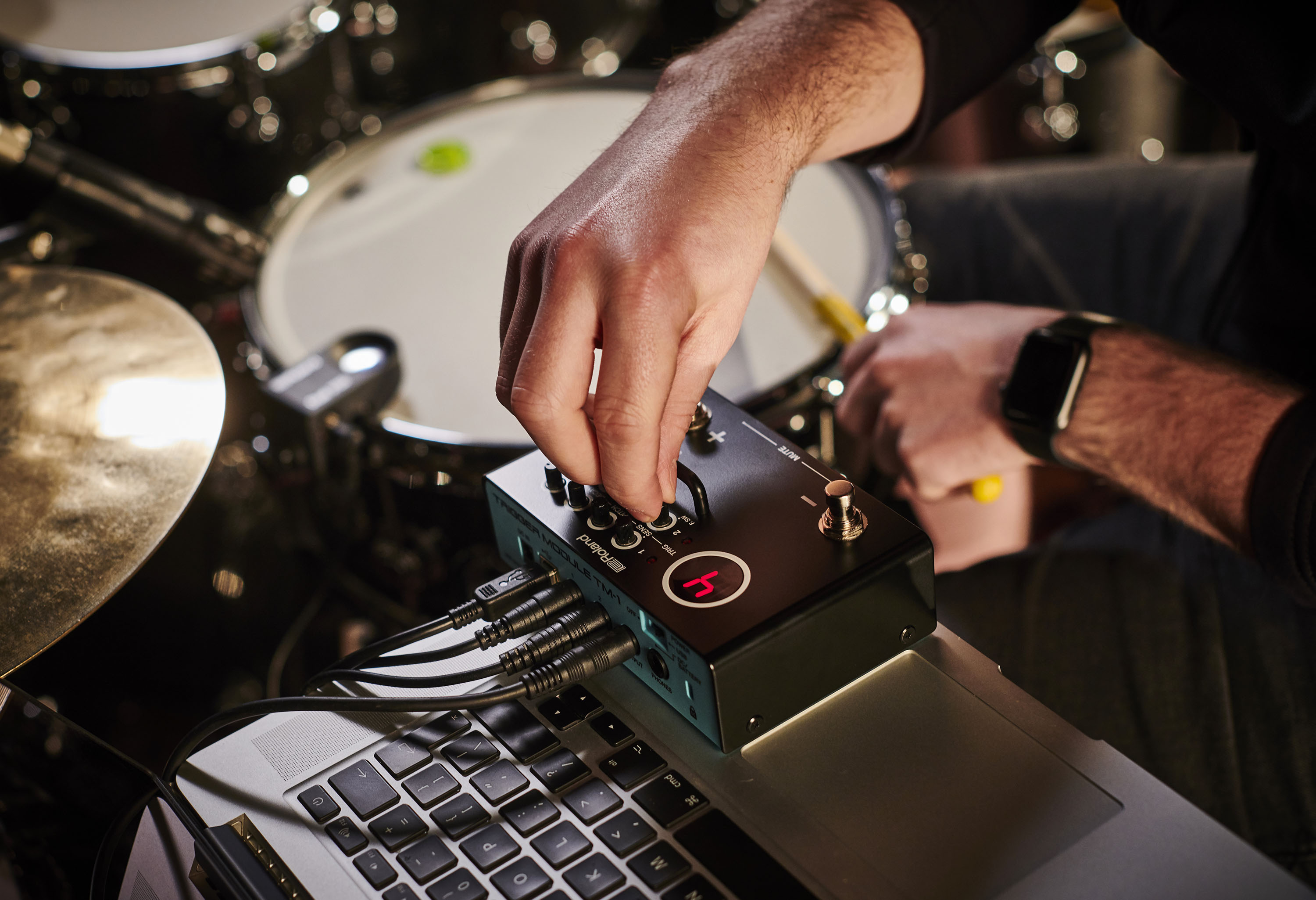 Voici le TM-1, un module de Trigger unique qui permet d’ajouter facilement divers sons à votre batterie acoustique. Ces sons peuvent être de tous types : grosses caisses, caisses claires, toms et cymbales en mémoire dans le TM-1, ou échantillons que vous aurez vous-même choisis et/ou confectionnés. Il vous suffit de connecter au TM-1 un pad Roland compatible pour jouer les sons dont vous avez besoin, ou de monter un capteur de la gamme RT Roland sur l’un de vos fûts acoustiques pour pouvoir déclencher sans aucune latence votre échantillon préféré, ainsi parfaitement synchronisé avec le son acoustique. Charger vos propres sons dans le TM-1 est très simple grâce à l’appli d’édition gratuite pour Mac, PC, iOS et Android. Il suffit de connecter le TM-1 à votre terminal, d’ouvrir l’appli, d’importer les échantillons de votre librairie et d’effectuer les réglages comme vous le souhaitez. Au moment de jouer sur scène, le TM-1 pourra être alimenté par piles ou par secteur et ses footswitchs actionnés au pied. Il est même possible de muter le son hybride d’une pression du pied, ce qui vous permet de jouer entièrement acoustique sur les couplets et d’ajouter facilement des sons hybrides sur les refrains pour leur donner plus de puissance. Tous les batteurs peuvent désormais tirer un grand bénéfice d’un kit hybride, et le TM-1 constitue le plus simple et le moins onéreux moyen d’y parvenir.