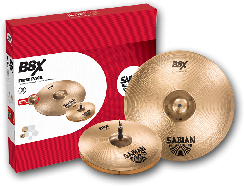 Set de cymbales Sabian B8X First 14. Après avoir subi les frappes de milliers de jeunes batteurs, les mythiques B8 s'arrêtent. Et pour les remplacer, Sabian a conçu les B8X qui offrent un martelage plus prononcé, un profil ajusté et une cloche martelée pour un son et un look encore meilleurs, plus adaptés aux besoins du batteur moderne ! Tout a changé, sauf le prix, toujours aussi accessible.