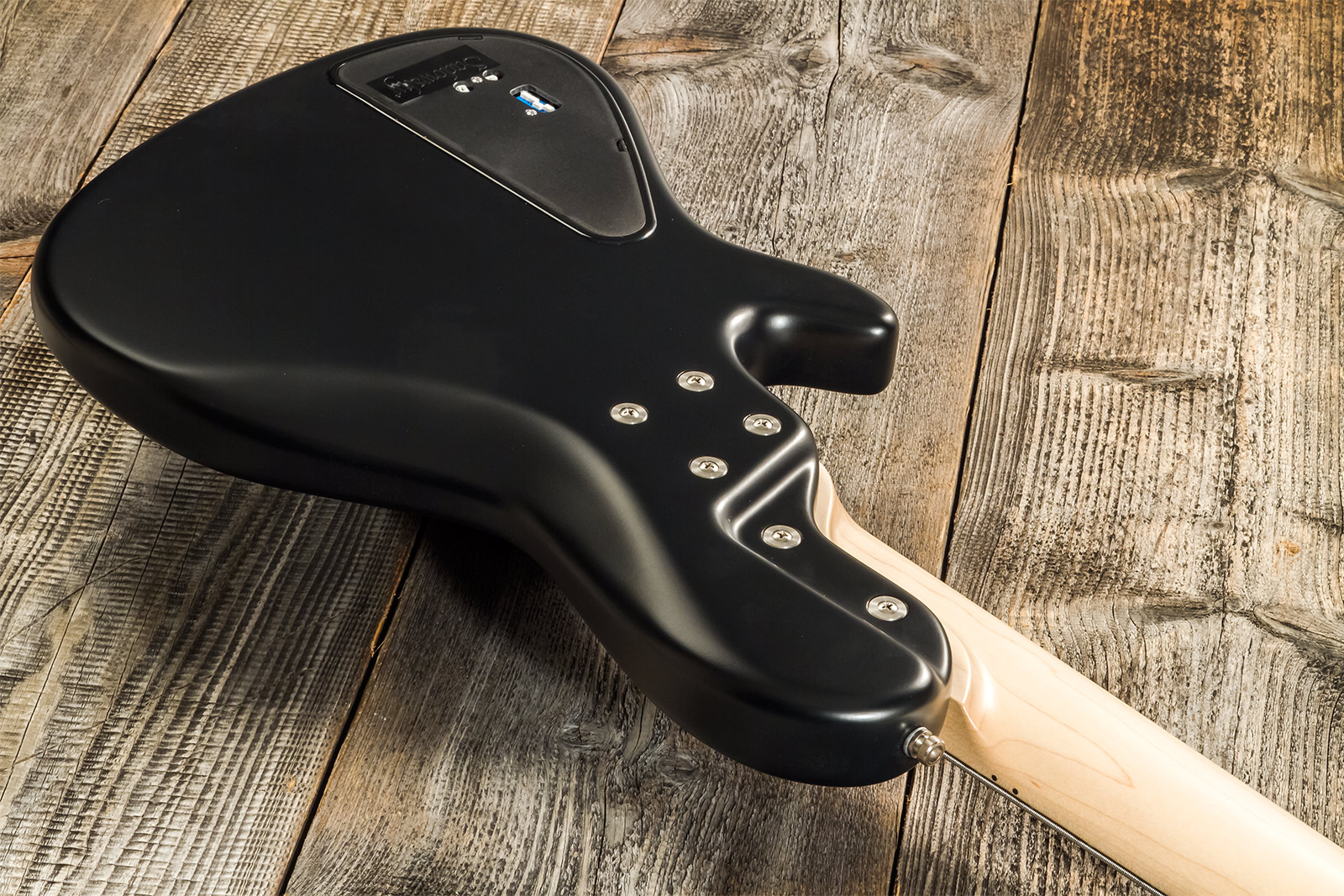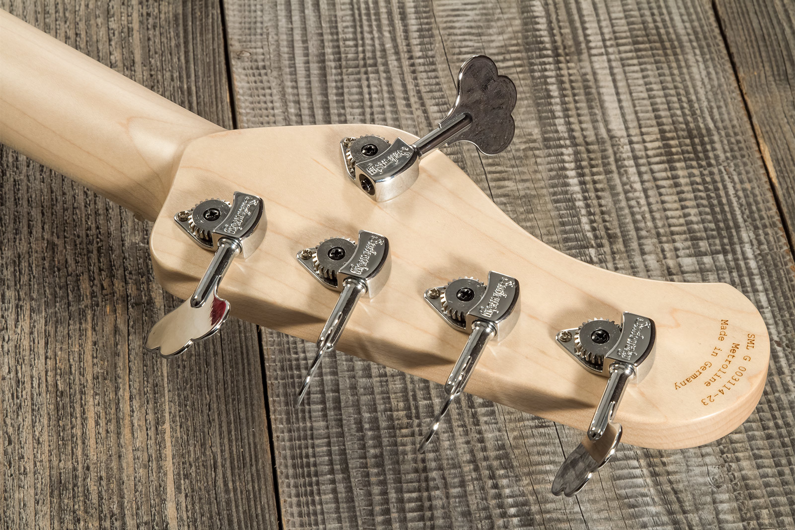 Basse électrique solid body cinq cordes avec préampli actif Sadowski Mid-Boost, corps en Frêne des marais américain, manche vissé en Erable, touche en Erable, duo de micros simple bobinage passif Sadowski Soapbar, chevalet Sadowsky Quick Release, mécaniques Sadowski Vintage-Style.