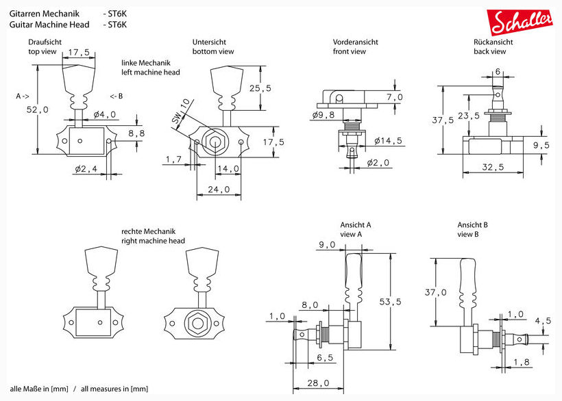 Schaller Original G-Series Keystone DR (Nickel) : 2x3 mécaniques pour guitare électrique style Gibson© Les Paul© / SG©.