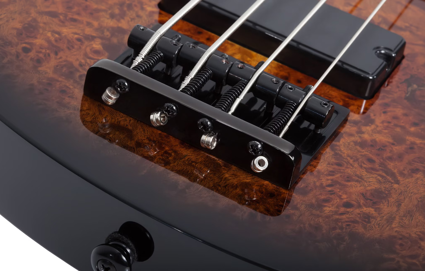 La SCHECTER C-4 Standard (#3970) est une basse électrique solid body hybride qui combine des éléments de lutherie traditionnels (corps en Acajou, table loupe de Peuplier, manche vissé en Erable torréfié, touche Palissandre, diapason 34") et des caractéristiques plus modernes pour une flexibilité maximale (micros Schecter Diamond Standard Soapbar, 24 frettes, ergonomie).