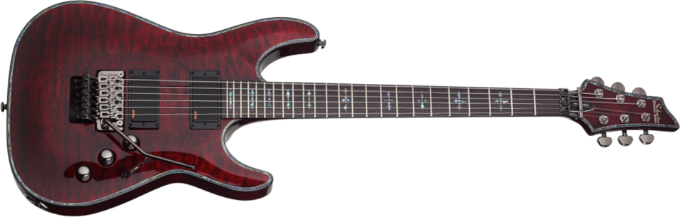 Guitare électrique solid body SCHECTER Hellraiser C-1 FR S (Black Cherry), corps Acajou, table Erable, manche collé Acajou, touche Palissandre 24 frettes, électronique active EMG et système Sustainiac, vibrato Floyd Rose double blocage 1000.