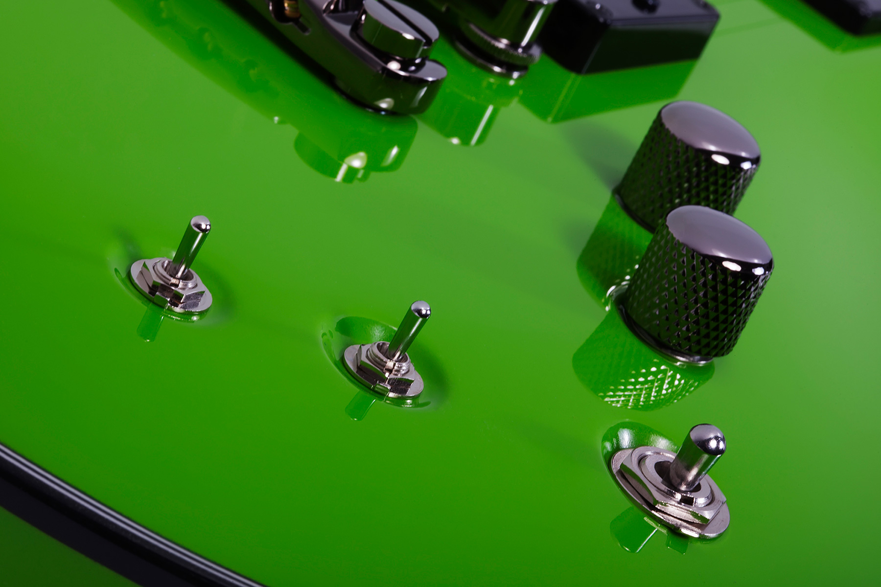 Elle combine une lutherie hybride d'excellente facture (corps Acajou, manche collé, touche en Palissandre 24 frettes), un incontournable micro Seymour Duncan JB SH-4 et un circuit Fernandes Sustainiac, LA référence pour obtenir un sustain infini.