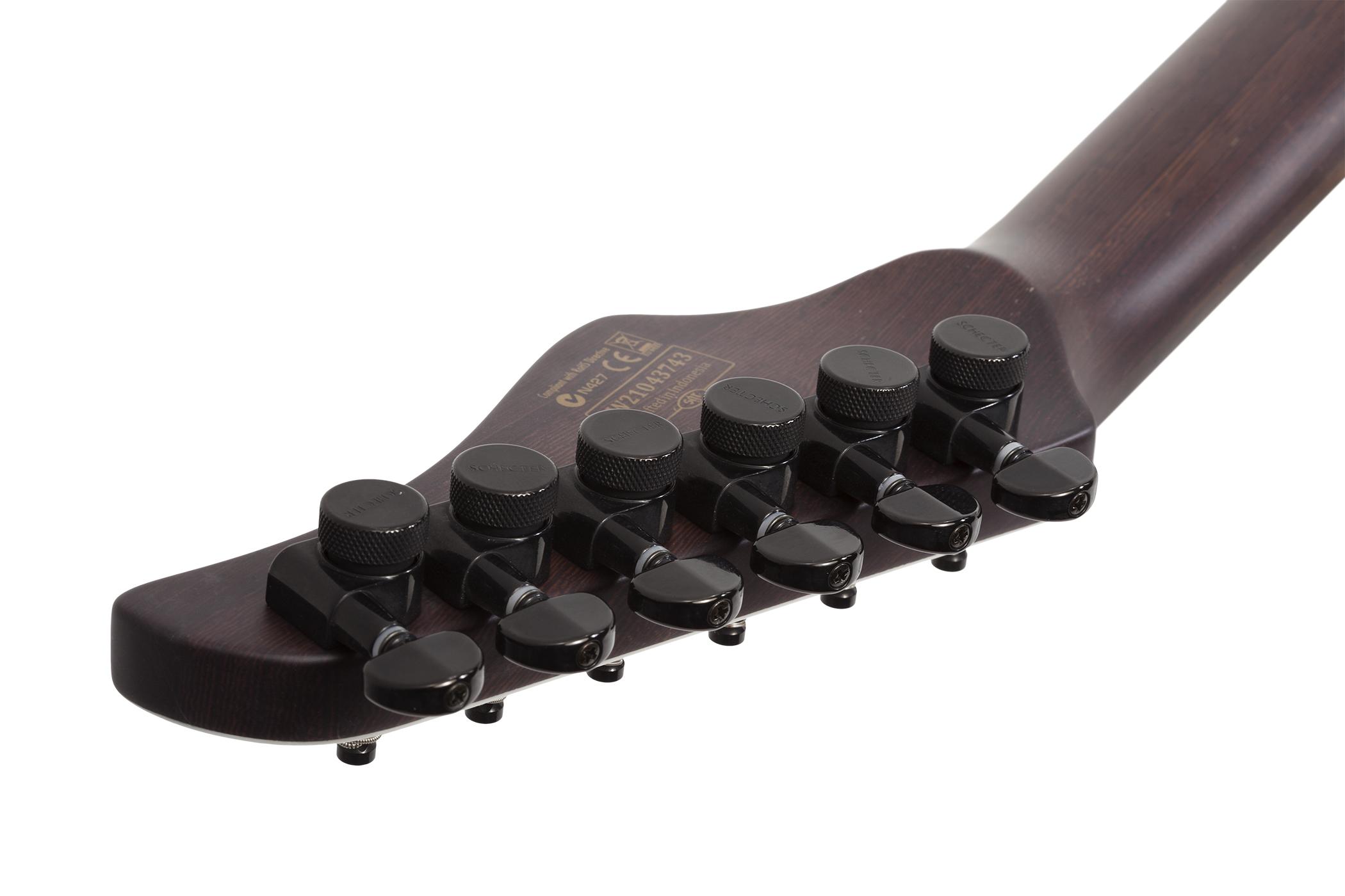 La combinaison d'une lutherie hybride (corps Acajou, manche collé en Wenge, diapason 25.5", touche Ebène 24 frettes), associée à un duo de micros double bobinage Schecter USA San Andreas Ceramic 8 des plus dévastateurs lui confèrent un parfait mélange de dynamique, d'agressivité et de définition.