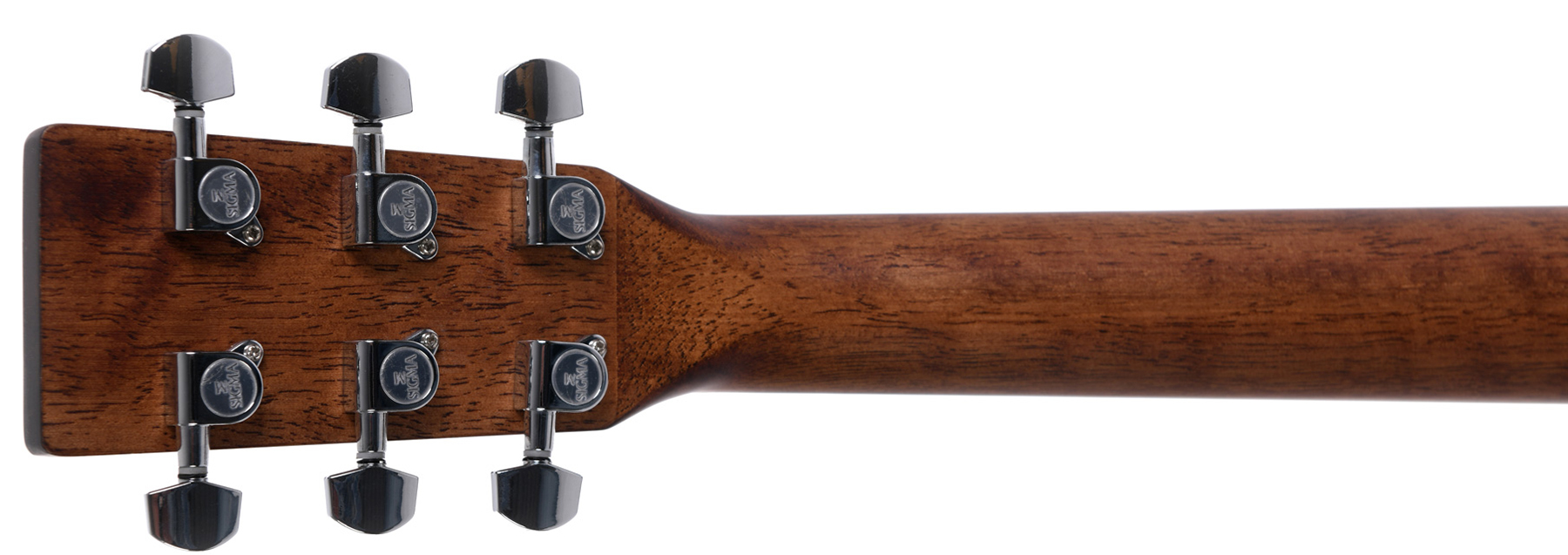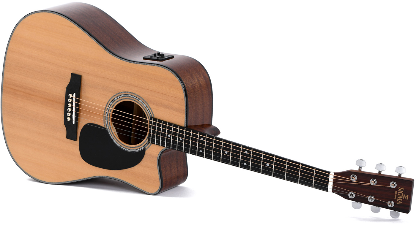 Très agréable à jouer et fonctionnelle, la SIGMA 1 Series DMC-1E est une guitare folk électro-acoustique de type Dreadnought avec pan coupé. Elle est constituée d'une table massive en Epicéa Sitka, d'un trio fond/éclisses/manche en Acajou laminé et d'une touche en Micarta.