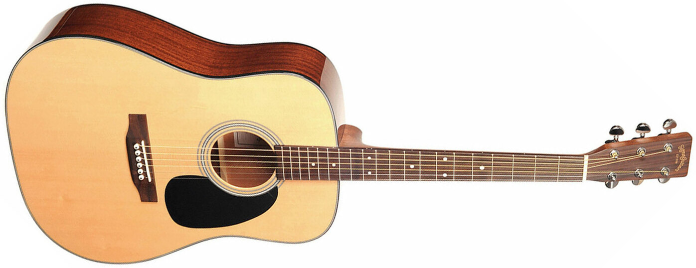 La guitare Folk SIGMA DM-18 est une Dreadnought de facture traditionnelle équipée d'une table massive en Epicéa Sitka massif, son dos et ses éclisses étant en Acajou laminé; il suffit de jouer quelques accords pour être surpris et séduit par la profondeur et la dynamique de ses sonorités.