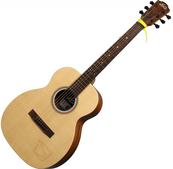 Elle est constituée d'une table massive en Epicéa Sitka, d'un trio fond/éclisses/manche en Acajou laminé et d'une touche en Micarta.