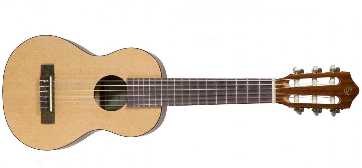 A mi-chemin entre la guitare classique et le ukulele, le guitalélé SILVANEZ GL100-NAT est une guitare à cordes nylon dont les proportions sont environ 1/4 celles d'une guitare traditionnelle.