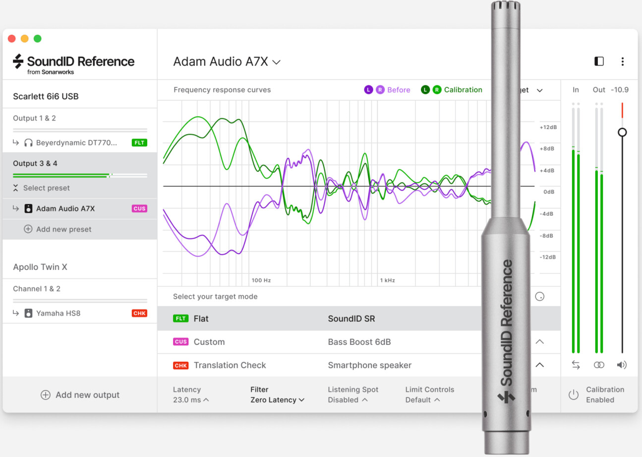 SoundID Reference Multicanal fournit un son de référence précis et fiable pour des configurations d'enceintes allant de la simple stéréo aux systèmes atmos 9.1.6. Il fonctionne également pour les casques, vous pouvez donc calibrer n'importe lequel des 480+ modèles de casques de notre base de données croissante de profils de casques pour obtenir un son de référence cohérent entre vos casques et vos enceintes.