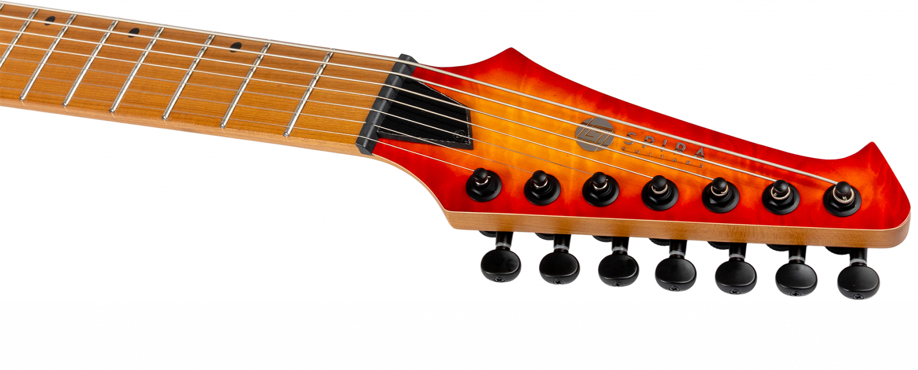 Vous avez sous les yeux un des meilleurs deal si vous cherchez une guitare électrique solid body de type Metal à un tarif très accessible. La SPIRA GUITARS S-507 QFB n'a pas grand chose à envier aux modèles de référence dans le genre, avec un zéro fautes tant au niveau des performances sonores que du confort de jeu.