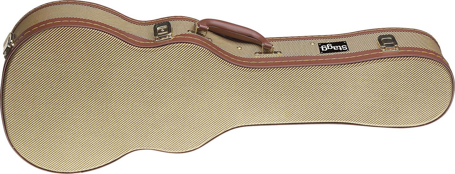 STAGG GCX-UKS GD Deluxe Vintage-Style : étui Ukulele Soprano, caisse en bois, revêtement Tweed, 54 x 16 x 6 cm, fermoirs grenouille acier anodisé.