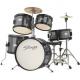 Batterie acoustique pour enfant Stagg modèle TIM J 5/16 RD, comprenant 5 fûts dont une grosse caisse de 16 pouces de diamètre (40 cm), et les accessoires, parfait pour batteur débutant à partir de 8 ans.