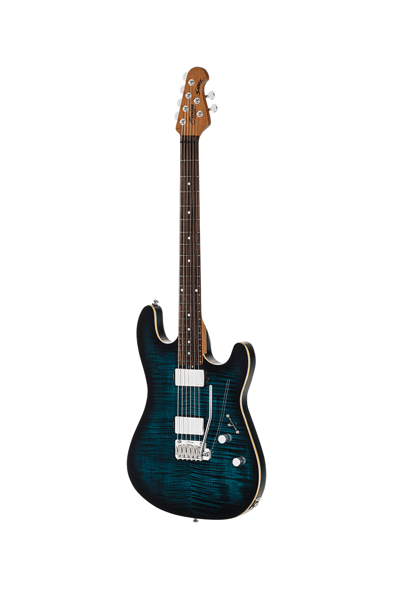 La Sterling Sabre est dotée d'un corps en nyatoh et d'une table en érable flammé qui apporte au son brillance et habille l'instrument d'un look classieux. Equipée de mécaniques auto-bloquantes, de frettes en acier inoxydable et d'un manche confortable en érable torréfié (forme de C), cette guitare est parfaite pour le shred. De plus, son set de micros Fishman Fluence Modern Humbucker lui confère une puissance et une précision à tomber.