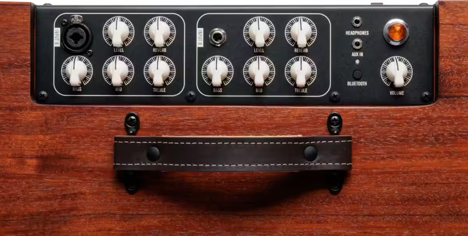 Le Taylor Circa 74 est équipé de deux canaux dotés de contrôles individuels (égalisation trois bandes, volume, reverb de type Room) pour une flexibilité maximale. Le canal A possède une entrée XLR pour microphone. Vous pourrez ainsi amplifier simultanément votre voix et votre guitare.