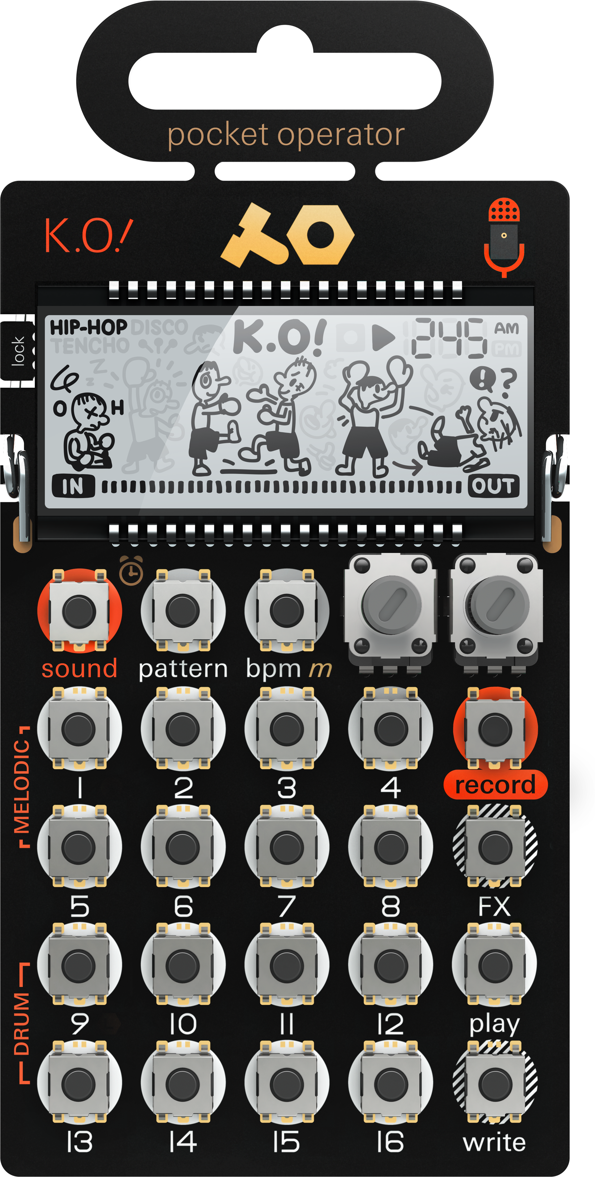 Le mini synthé TEENAGE ENGINEERING PO-33 KO! de la série Pocket Operator est un micro sampleur avec 40s de mémoire et microphone intégré.