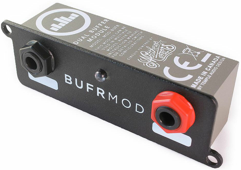 L'option TEMPLE AUDIO DESIGNS Mini Module BUFR MOD Dual Buffer pour pedalboard Templeboard pedalboard (s'installe sur une des encoches latérales), équipée de deux buffers indépendants Matthews Effects, permet à la fois de restaurer le signal, et d'obtenir diverses configurations de câblage :