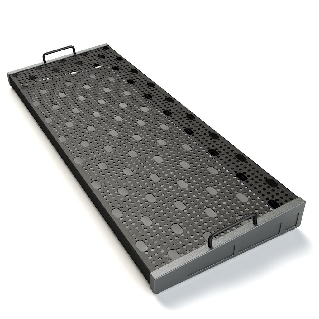 Le pedalboard TEMPLE AUDIO DESIGNS Templeboard Duo 34 Gunmetal Grey (318 x 864 x 66 mm) est constitué d'aluminium perforé, et équipé de passages pour câbles stratégiquement positionnés.