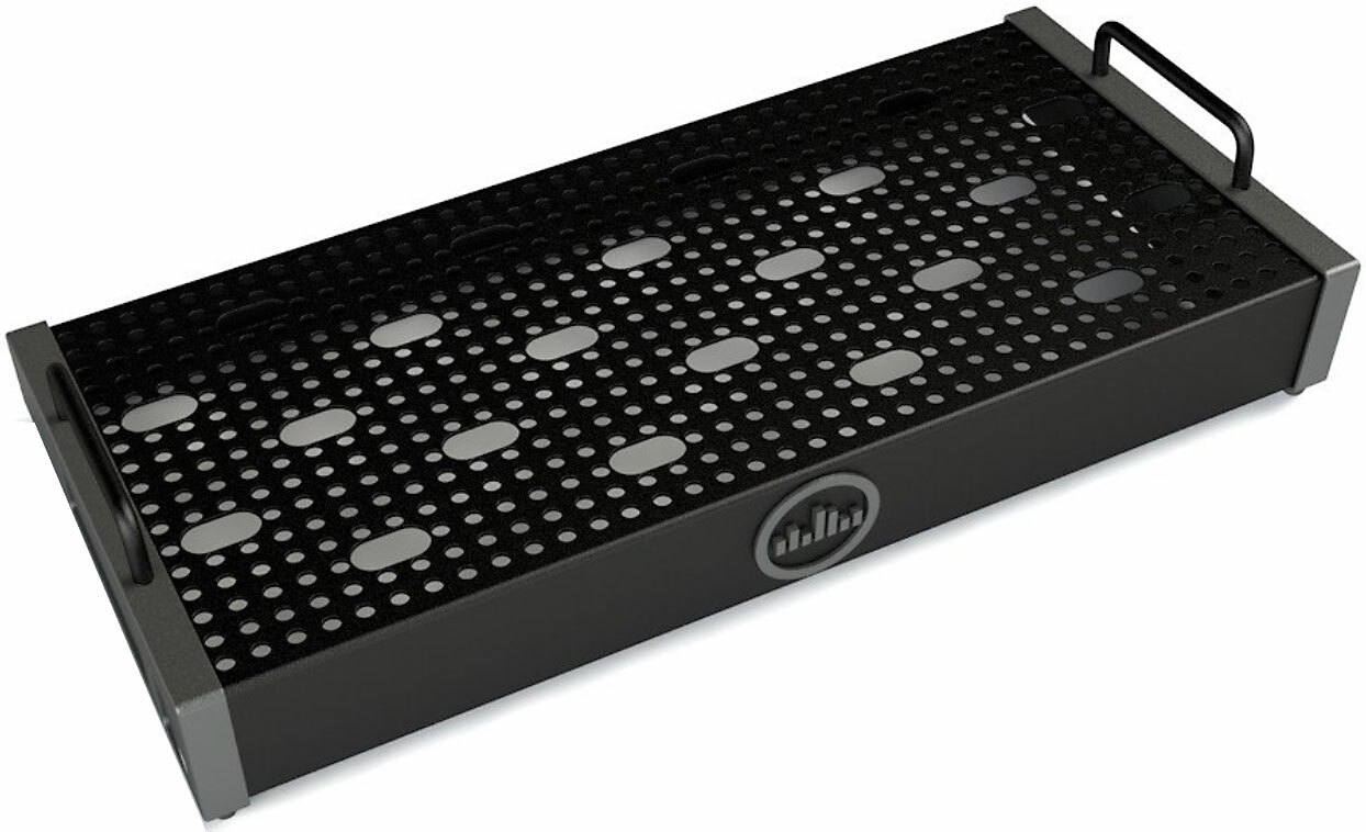 Le pedalboard TEMPLE AUDIO DESIGNS Templeboard Solo 18 GunMetal Grey (216 x 458 x 66 mm) est constitué d'aluminium perforé, et équipé de passages pour câbles stratégiquement positionnés.