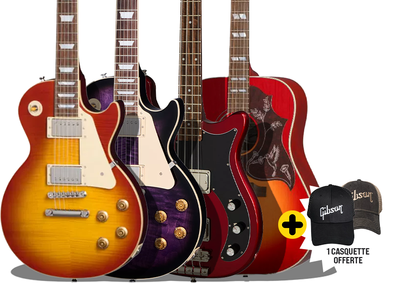 Bonne nouvelle : dans les boutiques Star’s Music et en ligne (hors Bruges), pour chaque guitare Gibson ou Epiphone achetée qu’elle soit électrique, acoustique ou même une basse, une casquette Gibson vous est offerte !