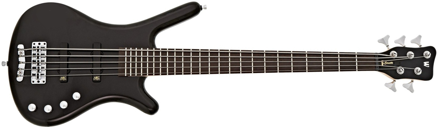 La WARWICK Rockbass Corvette Basic 5 String (Solid Black High Polish), basse électrique solidbody 5-cordes avec électronique active et touche 24 frettes, réinterprète une lutherie traditionnelle (corps Aulne, manche vissé Erable, diapason 34") à l'intention des bassistes qui cherchent un instrument moderne, convivial et polyvalent.
