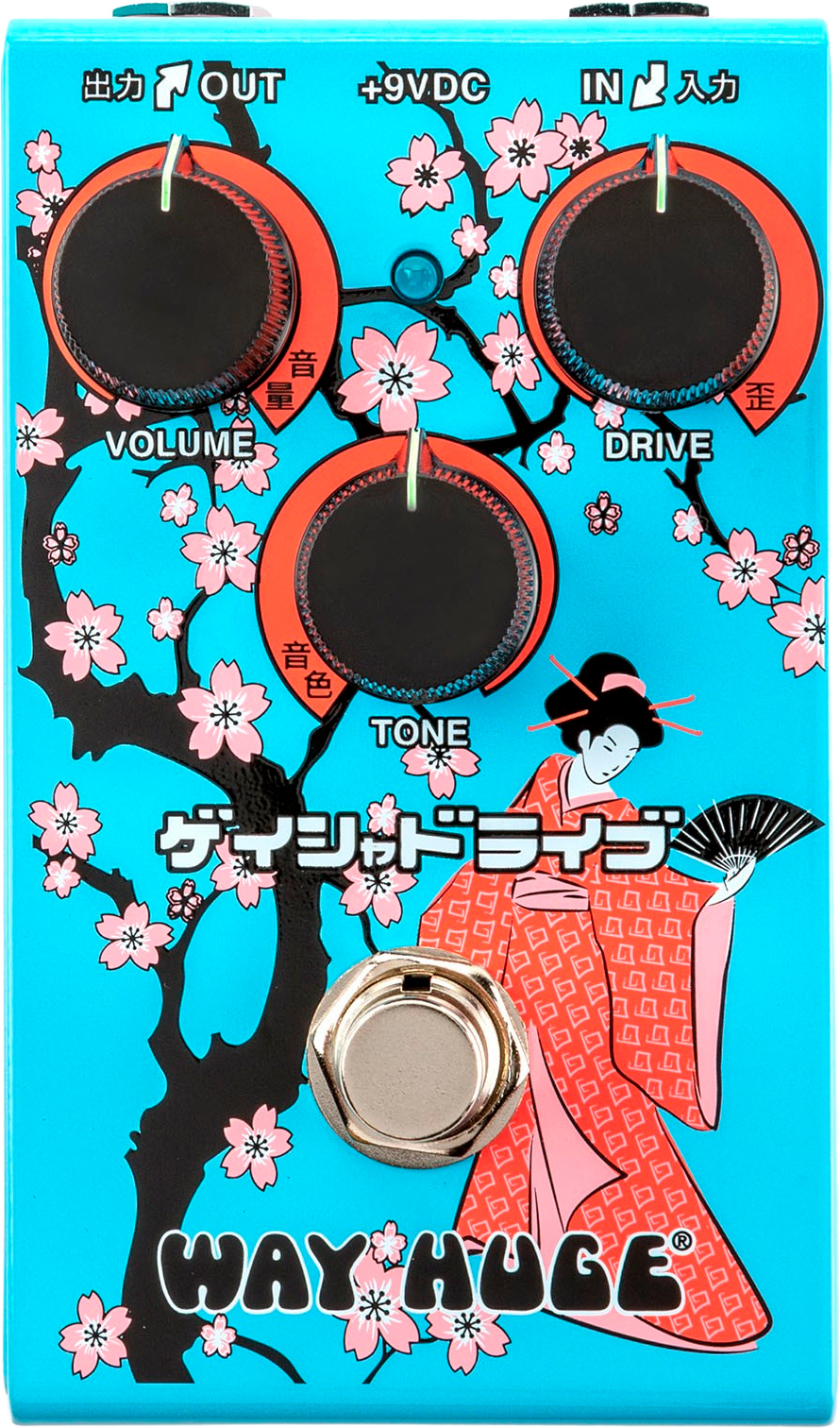 La pédale compacte WAY HUGE Limited Edition Smalls Geisha Drive WM32B Blue produit une large gamme de saturations dynamiques allant de l'overdrive à la distorsion en un coup de volume sur votre guitare. Le circuit simple de cette pédale laisse libre cours à votre personnalité et à celle de votre guitare. La Geisha Drive produit des saturations veloutées et puissantes qui réagissent à votre attaque. Le bouton Tone vous permettra d’éclaircir ou d'adoucir votre son. Fonctionne aussi bien sur un canal clean que sur un ampli à lampes poussé à bloc !