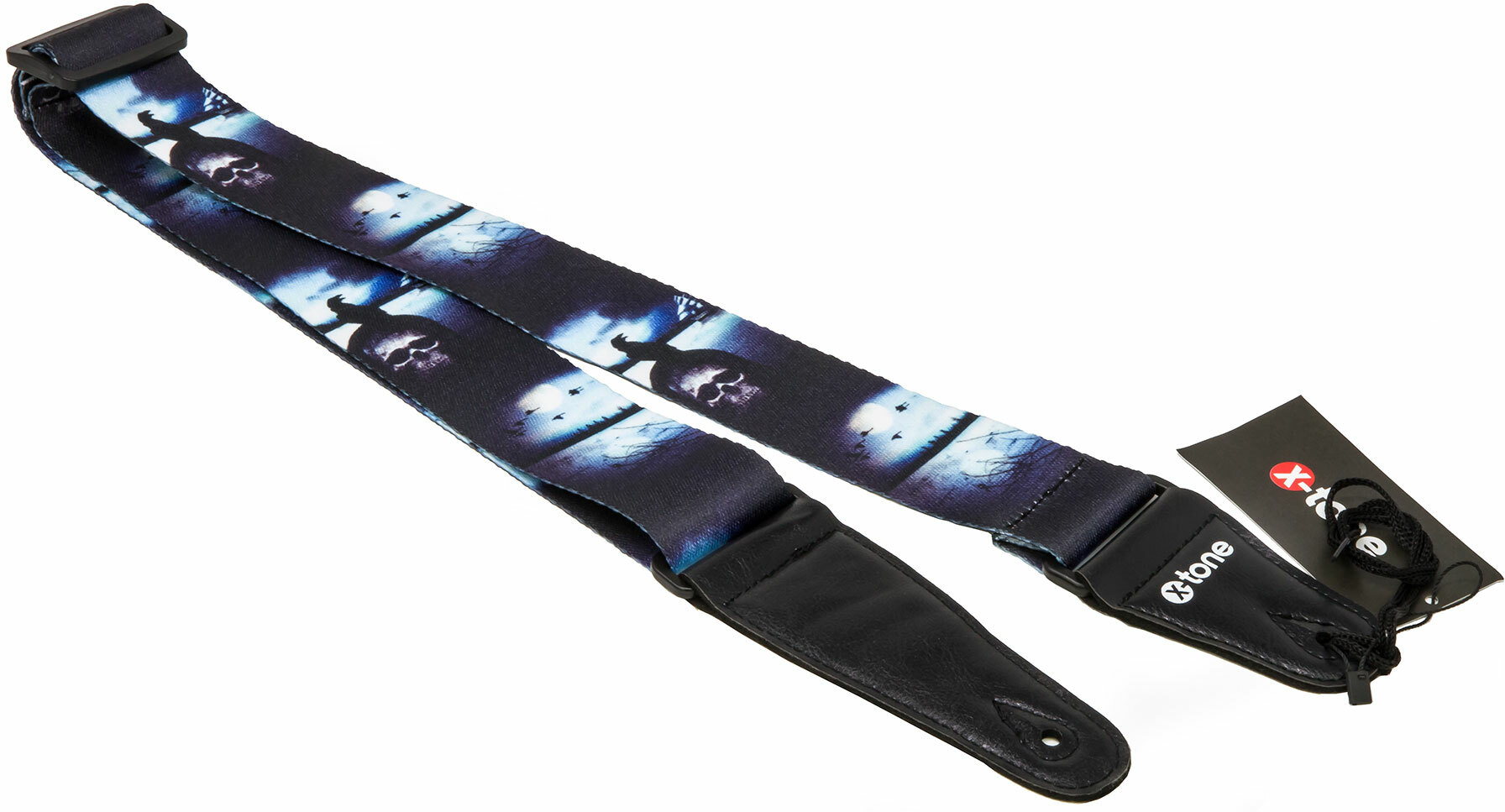 X-tone XG 3104 Nylon Guitar Strap Skull With Crow - Black & Blue