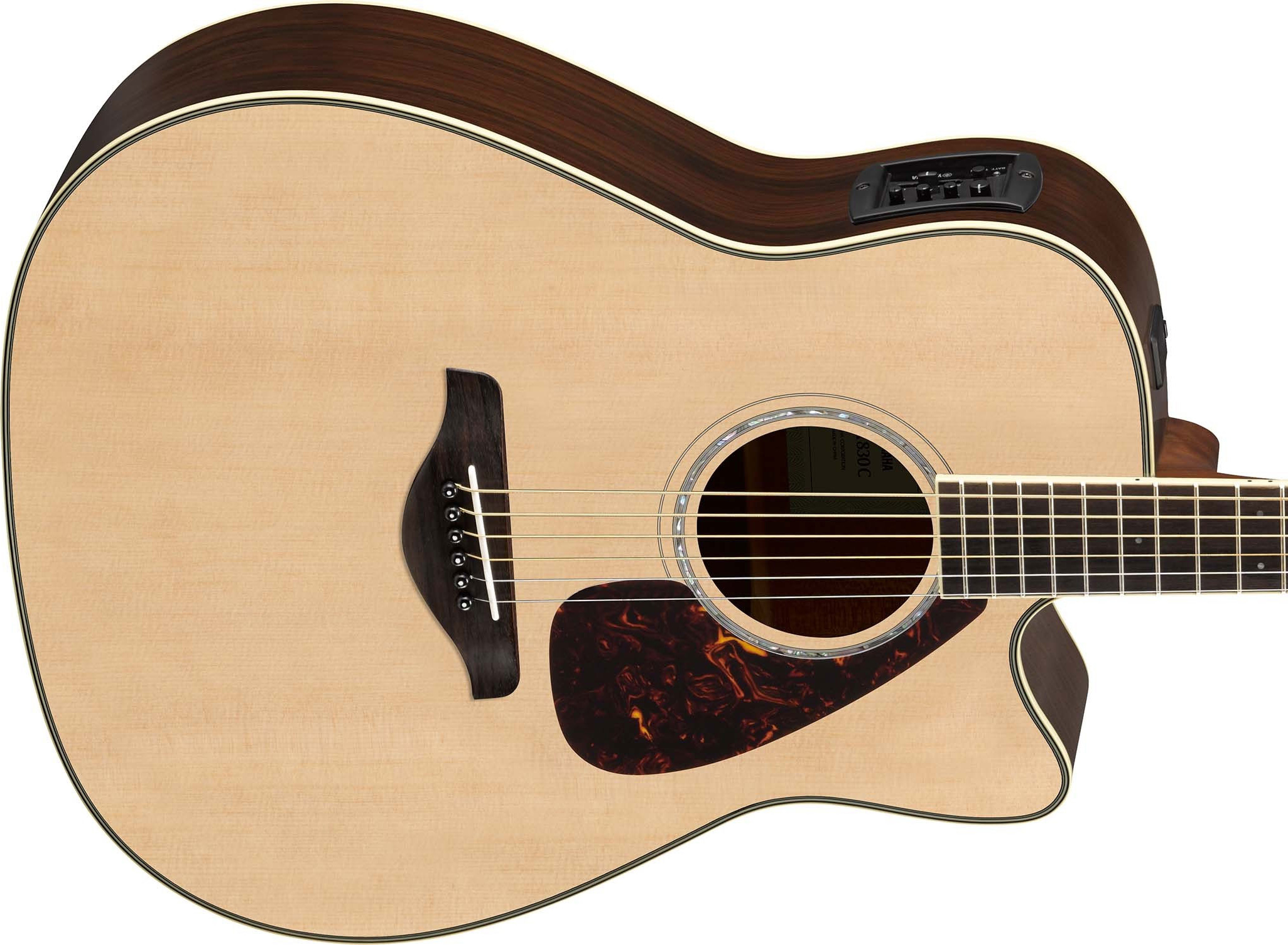 L'histoire des guitares acoustiques Yamaha FG a débuté en 1966 avec les FG180 et FG150 qui ont prouvé que des instrument d'excellente facture et très confortable pouvaient être proposés à un tarif ultra démocratique; avec plus de 200 variantes proposées au fil des années, le succès ne s'est jamais démenti et cette Dreadnought électro-acoustique avec pan coupé YAMAHA FGX830C NT avec table Epicéa massif, caisse Palissandre laminé et pré-ampli System66 (avec accordeur) ne vous décevra pas.