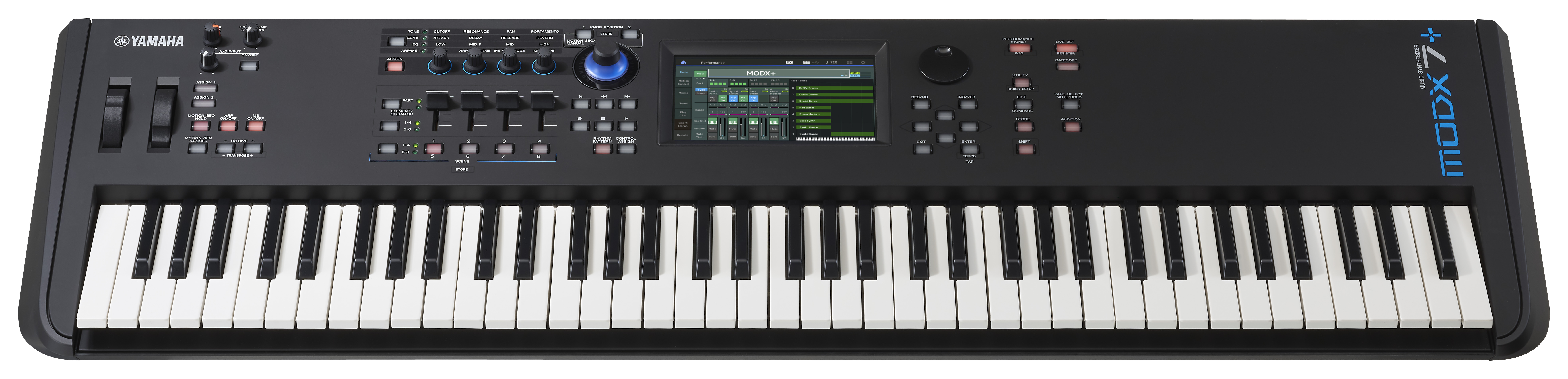 Le Yamaha MODX7+ est un synthétiseur nouvelle génération de 76 touches semi-lourdes compact et portable destiné aux claviéristes qui ont besoin d'une grande variété de sons, avec toutes les possibilités de superposition et de division dont ils peuvent avoir besoin.